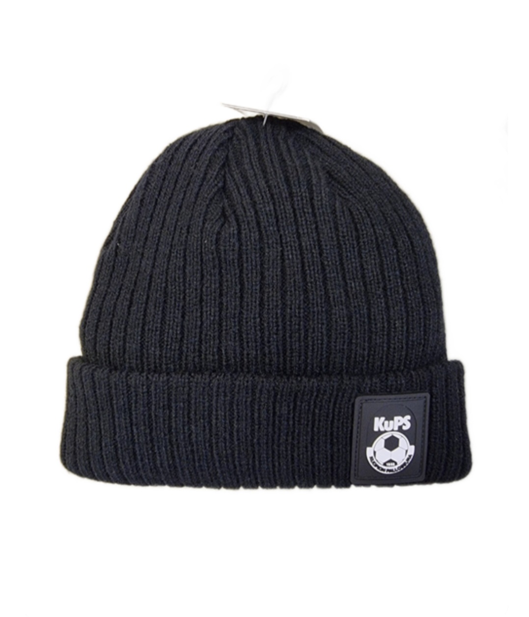 Tumma kalastajapipo KuPS-kumimerkillä.