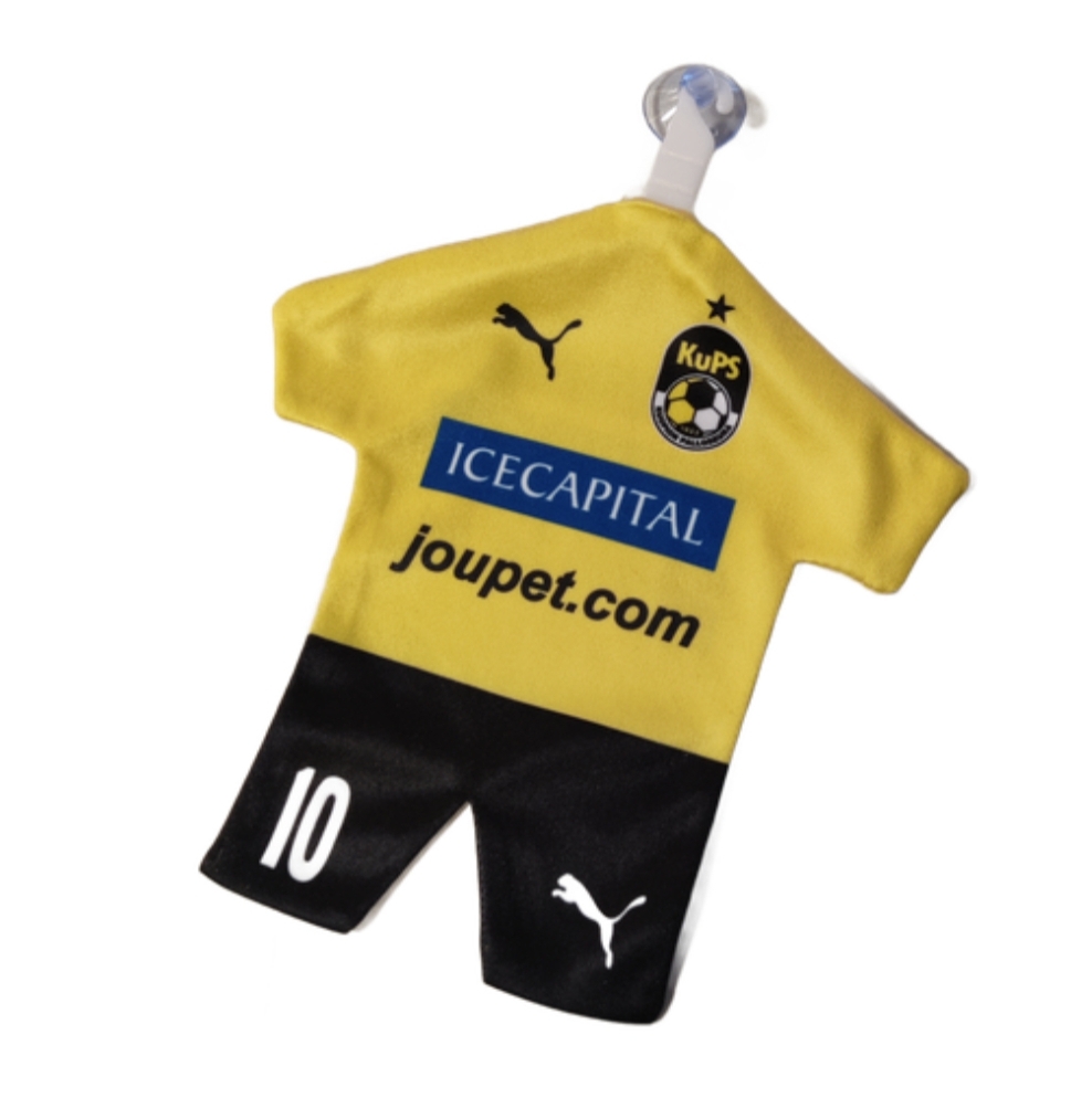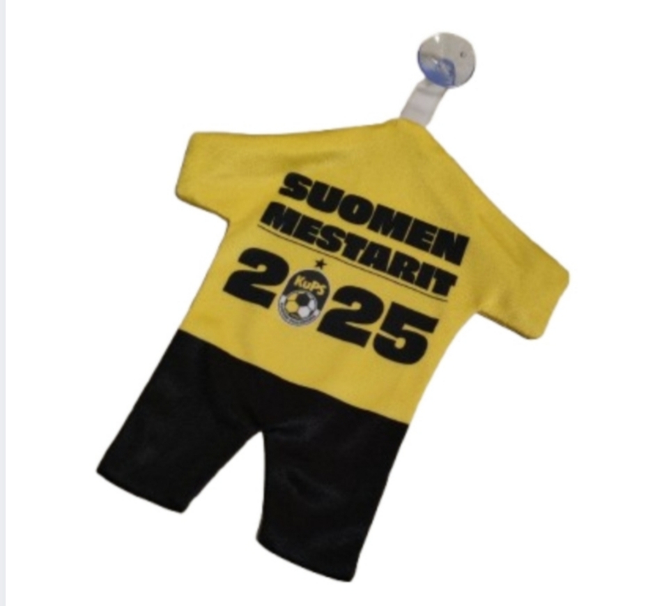 KuPSin Suomen mestarit peliasu varustettuna imukupilla, jotta tuotteen kiinnittäminen esimerkiksi auton sisäikkunaan on helppoa.